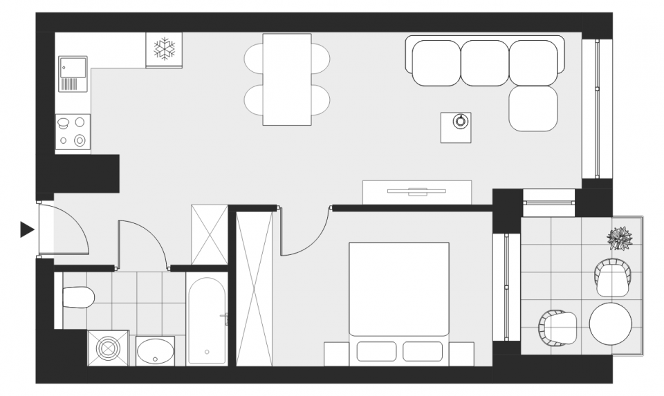 - Charakterystyka mieszkania: 41,96 m², 2 pokoje, 1 łazienka; stan: deweloperski