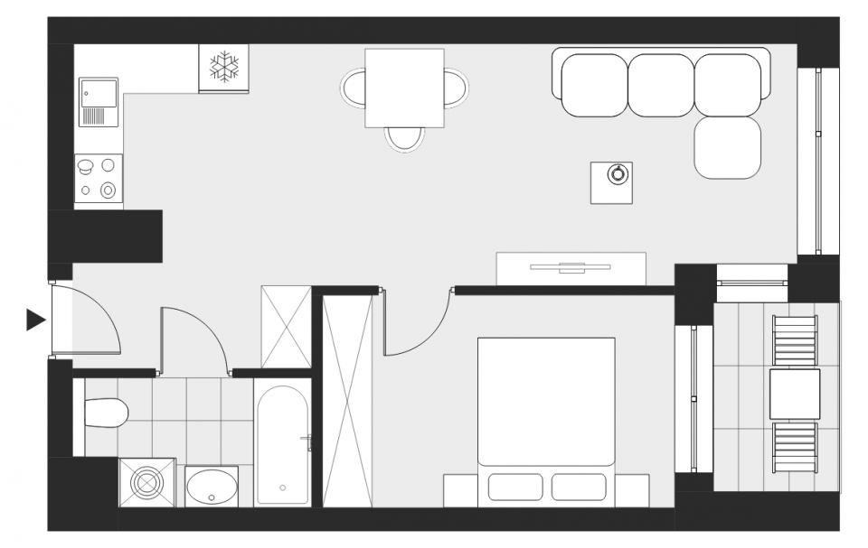 - Charakterystyka mieszkania: 41,96 m², 2 pokoje, 1 łazienka; stan: deweloperski