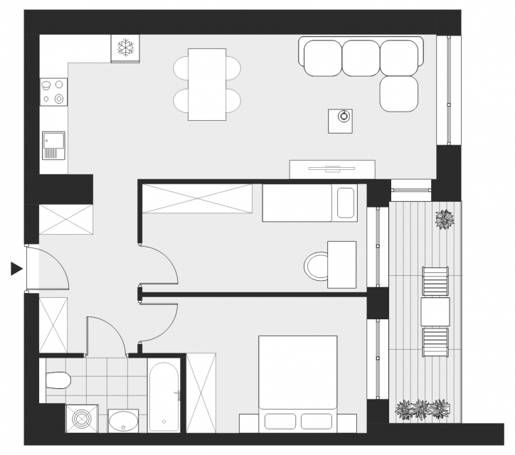 - Charakterystyka mieszkania: 59,61 m², 2 pokoje, 1 łazienka; stan: deweloperski