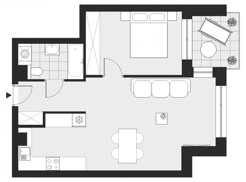 - Charakterystyka mieszkania: 49,76 m², 2 pokoje, 1 łazienka; stan: deweloperski